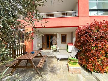 A Giulianova Lido, in Via Montezebio, proponiamo in vendita un grazioso appartamento al piano terra inserito in uno stabile moderno privo di barriere architettoniche, soluzione ideale per chi cerca comodità e funzionalità in un contesto residenziale tranquillo. L'immobile, realizzato nel 2010, si presenta in buone condizioni interne, con finiture curate e impianto di climatizzazione. L'appartamento gode di una buona esposizione, essendo libero su due lati, e dispone di accesso autonomo dal retro dello stabile, elemento che garantisce maggiore privacy e indipendenza. Uno dei punti di forza della proprietà è rappresentato dagli spazi esterni, con una corte pavimentata e un giardino esclusivo, perfetti per vivere momenti di relax all'aperto, pranzare in compagnia o creare una piacevole area verde privata. All'interno gli ambienti sono ben distribuiti e accoglienti. L'ingresso si apre su un luminoso soggiorno con angolo cottura open space, uno spazio conviviale pensato per la vita quotidiana. La zona notte è composta da due camere da letto, ideali sia per una famiglia sia per chi desidera uno studio o una stanza per gli ospiti. Completano la casa due bagni, di cui uno finestrato e uno cieco attualmente adibito a lavanderia, soluzione pratica e funzionale per la gestione della casa. La proprietà è completata da un posto auto scoperto e da una cantina al piano seminterrato, facilmente raggiungibile tramite ascensore, che offre ulteriore spazio utile per deposito e organizzazione. Grazie alla posizione nel cuore di Giulianova Lido, alla presenza degli spazi esterni privati e alle caratteristiche moderne dell'edificio, questa soluzione rappresenta un'ottima opportunità sia come abitazione principale, sia come casa vacanze al mare o investimento. Per ulteriori informazioni o per fissare un appuntamento, contattaci. Approfitta anche del nostro servizio Kiron se hai bisogno di un mutuo, un finanziamento o una surroga. Inoltre non perdere l'occasione di ricevere una c