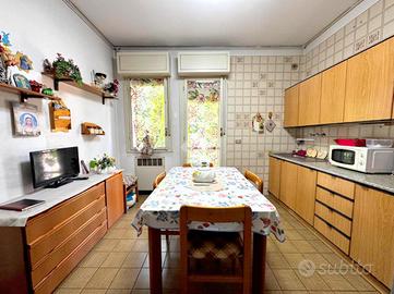 L'ingresso conduce a una cucina abitabile con accesso a un comodo balcone. Il soggiorno, anch'esso luminoso, affaccia su un balconcino che amplia ulteriormente la zona giorno. Il bagno è finestrato e dispone sia di vasca che di doccia. La zona notte comprende una camera matrimoniale con balcone privato, una camera singola ben proporzionata e un pratico ripostiglio utile come spazio di servizio.