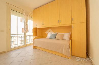 GOLFO ARANCI - Nel pieno centro della cittadina di mare, a pochi passi dal lungomare e dalla piazza Cossiga Il complesso di via Libertà, uno dei condomini costruiti durante gli anni 2000 e diviso in due fabbricati presenta una posizione di pregio grazie alla centralità di cui gode ed alla vista sul porticciolo di Golfo Aranci. Sviluppato su 3 livelli presenta al piano terra un locale commerciale che oggi ospita uno dei bar più conosciuti della città. Sul lato del complesso è presente l'ingresso comune dal quale si può accedere tramite ascensore agli appartamenti ai piani superiori ed al piano seminterrato che ospita i box e le cantine. Questo primo piano sviluppato su unico livello possiede la metratura tipica della casa da mare, con un ingresso che accoglie su una luminosa sala con angolo cottura a vista e terrazzo con vista suggestiva sul mare dove è possibile mangiare in assoluta riservatezza con amici e parenti. Dal disimpegno si accede alla zona notte dove sono presenti 2 stanze da letto di cui una matrimoniale con balcone che prospetta sul lato opposto all'ingresso e seconda camera anch'essa dotata di balconcino. Completa l'interno un bagno finestrato con vasca. Importante inoltre la presenza di una cantina compresa assieme all'appartamento posta al piano seminterrato e accessibile direttamente dall'interno tramite scala o ascensore. L'immobile è in buone condizioni di manutenzione ed è ideale per chi desidera avere una casa al mare al centro di una delle zone più rinomate della Gallura. Inoltre è disponibile all'interno del complesso anche un magazzino al piano seminterrato accessibile tramite basculante anche con auto di segmento piccolo.