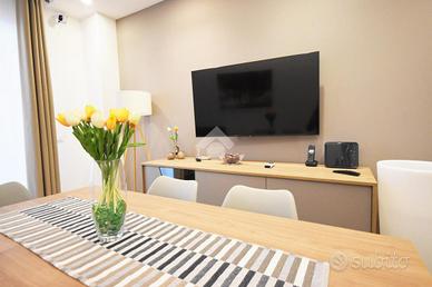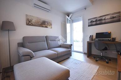 Posto al primo piano con ascensore l'immobile si presenta in ottimo stato e completamente arredato con elementi di ottima fattura. L'ingresso è in openspace con angolo cottura e zona living con uscita sul terrazzo panoramico vista mare. Questo è munito di tende da sole automatiche con sensore sensibile al vento, in caso di forte vento si richiudono. La zona notte comprende una cameretta ed una camera da letto matrimoniale con bagno in camera, vi è un secondo servizio completo. Gli infissi di ultima generazione hanno i vetri stop sol, da fuori non si vede l'interno, il riscaldamento è autonomo con caldaia e vi sono anche i climatizzatori. Inoltre vi è l'addolcitore con acqua depurata direttamente in casa, video citofono, serrande elettriche e controllo da remoto tramite applicazione. E' compreso un garage di 20 mq con saracinesca elettrica nel quale è stato da poco installata una stazione di ricarica per auto elettriche. La casa è pronta per essere abitata e non necessità di alcun tipo di intervento.