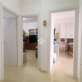 Gravina di Catania, in viale dell'autonomia, al confine con Sant'Agata Li Battiati. Appartamento di circa 110 mq totalmente ristrutturato, situato all'interno di un residence degli anni 80' con facciata rifatta recentemente. L'immobile si trova al terzo piano di uno stabile con ascensore e si presenta in ottime condizioni poichè di recente ristrutturazione. L'ingresso su ampio disimpegno separa gli ambienti, tutti luminosi e arieggiati. La zona living è composta da cucina-soggiorno con finestra e balcone vista mare ed una comoda lavanderia anch'essa finestrata. La zona notte è composta da due camere da letto matrimoniali,una delle quali con bagno privato ed entrambe servite da terrazzo con vista Etna. Sono presenti inoltre un ripostiglio ed un secondo servizio. L'appartamento è stato ristrutturato in tutte le parti, gli infissi sono in vetro-camera e tutti gli impianti risultano nuovi e con certificazione. Completa la soluzione un garage di 10 mq all'interno del residence.