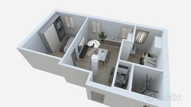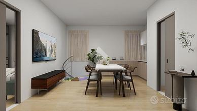 In zona Centrale di Grugliasco, a pochissimi passi dal viale pedonale di Grugliasco, e dal Viale Gramsci: intervento edilizio che prevede la ristrutturazione totale e la riqualificazione di un edificio di due piani fuori terra. L'intervento consiste nella realizzazione di 5 appartamenti di varie tipologie con possibilità di modifica e personalizzazione del progetto. Appartamento ROSSO: 3 locali con cantina piastrellata e collegata. L'appartamento è composto da un ingresso living su un'ampia zona soggiorno - cucina, una camera da letto matrimoniale, una seconda camera, antibagno e bagno. Al piano interrato si trova una cantina di 26 mq che viene consegnata piastrellata e collegata direttamente all'appartamento tramite una scala interna. I pavimenti delle camere saranno realizzati in gres porcellanato aventi formato a scelta, e i rivestimenti della cucina saranno realizzati con piastrelle in ceramica mono cottura. I serramenti esterni saranno realizzati con materiale PVC con doppi vetri, muniti di tapparelle motorizzate. Le porte interne saranno della ditta Bertolotto. Il portoncino d'ingresso sarà blindato. L'impianto elettrico sarà realizzato in perfetta regola d'arte e in conformità alle norme CEI. Ogni camera sarà dotata di un numero definito di punti luce, punti presa, 1 punto rete/dati, 1 presa TV, 1 presa telefono. L'appartamento sarà dotato di: videocitofono, predisposizione per impianto di climatizzazione, predisposizione per impianto di allarme. L'impianto di riscaldamento è centralizzato con caldaia a condensazione, contatori di calorie e cronotermostato digitale. Il calore verrà distribuito tramite radiatori Zehnder serie Charleston a parete in acciaio con tubolari di colore bianco; il bagno sarà dotato di scaldasalviette. La consegna è prevista entro il termine massimo di luglio 2026. Al termine dei lavori verrà rilasciata idonea certificazione attestante la conformità dell'esecuzione degli impianti ai dettami della legge 46/90. N.B. L'acquis