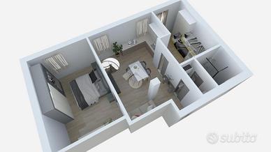 In zona Centrale di Grugliasco, a pochissimi passi dal viale pedonale di Grugliasco, e dal Viale Gramsci: intervento edilizio che prevede la ristrutturazione totale e la riqualificazione di un edificio di due piani fuori terra. L'intervento consiste nella realizzazione di 5 appartamenti di varie tipologie con possibilità di modifica e personalizzazione del progetto. Appartamento ROSSO: 3 locali con cantina piastrellata e collegata. L'appartamento è composto da un ingresso living su un'ampia zona soggiorno - cucina, una camera da letto matrimoniale, una seconda camera, antibagno e bagno. Al piano interrato si trova una cantina di 26 mq che viene consegnata piastrellata e collegata direttamente all'appartamento tramite una scala interna. I pavimenti delle camere saranno realizzati in gres porcellanato aventi formato a scelta, e i rivestimenti della cucina saranno realizzati con piastrelle in ceramica mono cottura. I serramenti esterni saranno realizzati con materiale PVC con doppi vetri, muniti di tapparelle motorizzate. Le porte interne saranno della ditta Bertolotto. Il portoncino d'ingresso sarà blindato. L'impianto elettrico sarà realizzato in perfetta regola d'arte e in conformità alle norme CEI. Ogni camera sarà dotata di un numero definito di punti luce, punti presa, 1 punto rete/dati, 1 presa TV, 1 presa telefono. L'appartamento sarà dotato di: videocitofono, predisposizione per impianto di climatizzazione, predisposizione per impianto di allarme. L'impianto di riscaldamento è centralizzato con caldaia a condensazione, contatori di calorie e cronotermostato digitale. Il calore verrà distribuito tramite radiatori Zehnder serie Charleston a parete in acciaio con tubolari di colore bianco; il bagno sarà dotato di scaldasalviette. La consegna è prevista entro il termine massimo di luglio 2026. Al termine dei lavori verrà rilasciata idonea certificazione attestante la conformità dell'esecuzione degli impianti ai dettami della legge 46/90. N.B. L'acqui