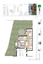 L'ingresso ci conduce nella luminosa zona living con cucina open space ed affaccio diretto al pergolato esterno fruibile per i pranzi e cene in compagnia nelle stagioni primaverili/estive.