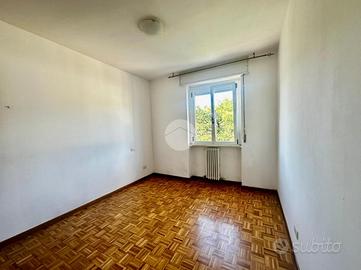Attraverso il disimpegno si raggiunge la zona notte dove troviamo la camera matrimoniale dotata di terrazza privata con vista sul monte di Grumello, la cameretta ed il bagno padronale molto ampio dotato di doccia, vasca ed attacchi per la lavatrice.
