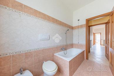 Proseguendo, la soluzione presenta una cucina separata e totalmente vivibile,con una dispensa interna, due ampie camere da letto matrimoniali, una della quali presenta un bagno direttamente in camera, ed in fine, un secondo bagno finestrato e con vasca, completa la proprietà un ulteriore ripostiglio.