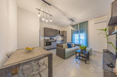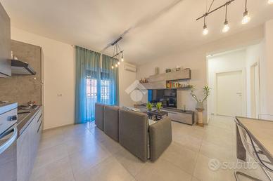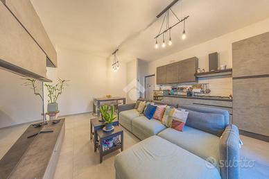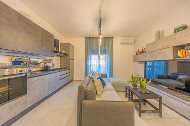 Varcata la soglia di Casa, ad accoglierci troviamo un luminoso soggiorno con cucina a vista che fanno da cornice all'intera zona giorno.