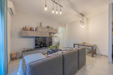 La soluzione, un piano rialzato in ottimo stato interno e ristrutturato nel 2020, presenta una corte esclusiva pavimentata di circa 100 mq.