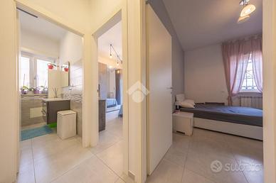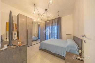 La zona notte, invece, è composta da una prima camera da letto matrimoniale con porta finestra che conduce direttamente al balcone perimetrale. Troviamo poi la seconda camera, di dimensioni leggermente ridotte, ma comoda in egual modo.
