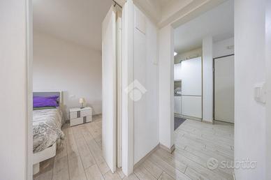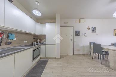 L'ingresso ci accoglie in una zona giorno luminosa con angolo cottura, dove la continuità tra interno ed esterno rende l'ambiente ancora più piacevole grazie all'accesso diretto al giardino privato: uno spazio ideale per rilassarsi, ricevere amici o godersi momenti all'aperto in totale privacy.