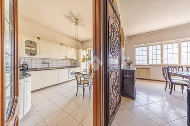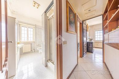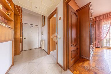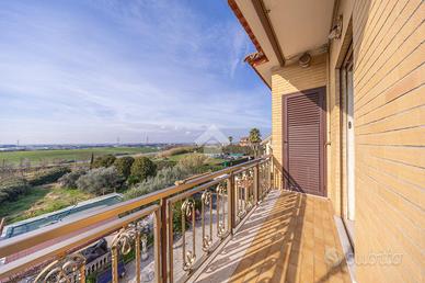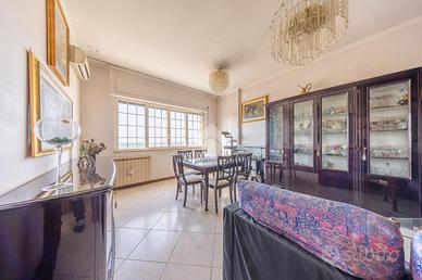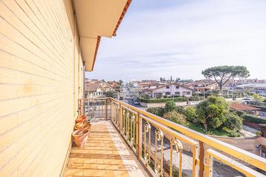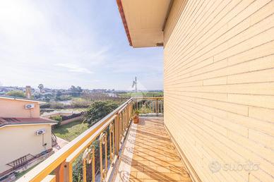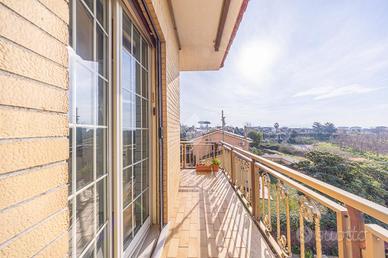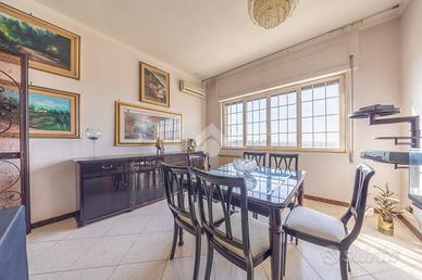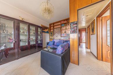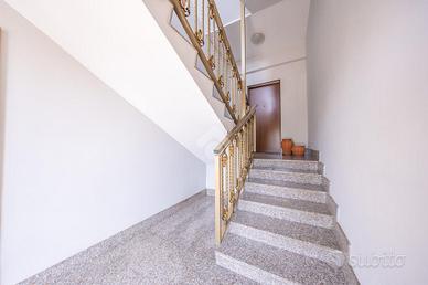 A completare la proprietà ci sono due balconi, accessibili da più ambienti dell'appartamento, ideali per godere di una vista panoramica e momenti all'aperto, oltre ad un posto auto scoperto, un box ed un giardino al pian terreno di circa 300 mq.