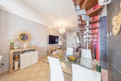 Ci sono immobili che sulla carta sembrano interessanti, e poi ci sono quelli che, appena entri, ti fanno capire subito che possono diventare casa. All'interno di uno stabile del 2006 rifinito in tinta e cortina, proponiamo un trilocale su due livelli in condizioni eccellenti, pensato per chi cerca una soluzione pronta, senza compromessi e senza lavori da affrontare. La zona giorno accoglie con una piacevole sensazione di luce e ordine: la sala con cucina a vista è ben distribuita, funzionale, e si apre direttamente su un terrazzino e un balcone che rendono gli spazi più vivibili nella quotidianità. La doppia esposizione accompagna l'immobile durante tutta la giornata, valorizzando ogni ambiente. Salendo al piano superiore si percepisce subito un cambio di ritmo: la zona notte è più riservata, ben organizzata, con una camera matrimoniale dotata di cabina armadio e una seconda stanza versatile, facilmente adattabile alle diverse esigenze abitative. L'appartamento si presenta in uno stato manutentivo impeccabile e viene venduto completo di arredo, un aspetto che incide concretamente sul valore e permette un utilizzo immediato, senza ulteriori investimenti o tempi di attesa. A completare la proprietà, un box auto con serranda elettrica e un posto auto, elementi sempre più determinanti nella scelta. È una soluzione che riesce a coniugare praticità, comfort e convenienza in modo equilibrato, risultando adatta sia come prima abitazione sia come investimento solido, soprattutto per chi riconosce il valore di un immobile già pronto e ben tenuto.