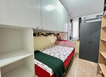 L'abitazione ha una superficie di circa 60 mq ed è composta da ingresso su soggiorno, ambiente luminoso valorizzato dalla presenza di un lucernaio, una cucina separata con accesso a un balconcino, una camera matrimoniale, una cameretta e un ampio bagno finestrato dotato di box doccia.