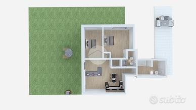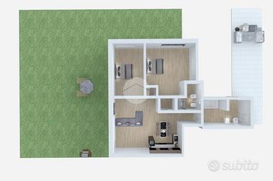 In zona tranquilla a pochi minuti dal centro e dai servizi, in villa composta da sole quattro unità abitative, proponiamo in vendita un appartamento al piano terra con ingresso indipendente e assenza totale di spese condominiali. L'abitazione si distingue per il suo ampio giardino privato che abbraccia la casa sui tre lati, garantendo massima privacy e piacevoli spazi all'aperto. La zona giorno è luminosa e accogliente, composta da soggiorno con cucina a vista e con uscita diretta sul giardino. Nella parte piastrellata esterna è presente un pergolato ideale per pranzi e cene all'aperto, perfettamente riparato e vivibile in ogni stagione. La zona notte comprende due camere da letto, di cui una camera matrimoniale con bagno privato. Il secondo bagno, dotato di vasca, dispone di un'uscita diretta sul terrazzo posto sul retro dell'abitazione, uno spazio aggiuntivo che assicura comodità e sfogo esterno. A completare la proprietà, tre posti auto privati.