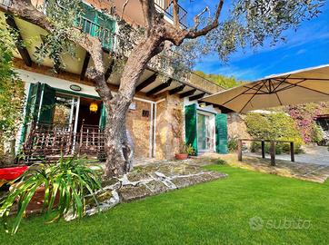 Il giardino vista mare, vero punto di forza della proprietà, è ideale per pranzi all'aperto, cene al tramonto e momenti di relax in totale privacy. La presenza di un posto auto adiacente rende l'abitazione comoda e funzionale.