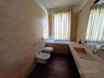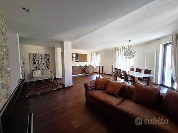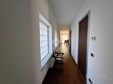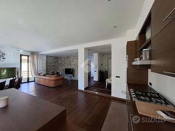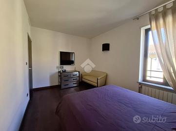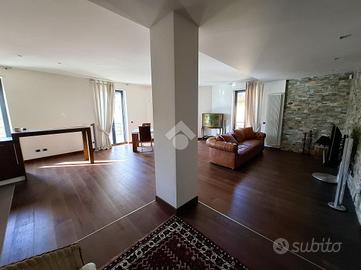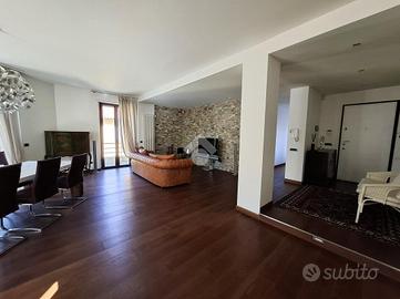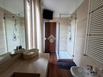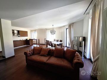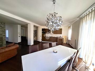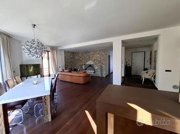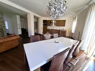 INVERUNO - Nel centro storico, comodo per raggiungere a piedi tutti i servizi che offre il paese, proponiamo in contesto cortilizio storico di poche unità, un esclusivo appartamento di 130 mq, completamente ristrutturato nel 2009. L'immobile, offre un'ampia disposizione su un unico piano, caratterizzata da un luminoso soggiorno doppio con angolo cottura e zona pranzo, che si affaccia tramite una vista panoramica sulla Piazza principale del paese. Tramite il corridoio si accede alla zona notte, dove troviamo l'ampia camera matrimoniale, la cameretta e i doppi servizi entrambi finestrati (rispettivamente con ampia doccia e vasca da bagno). La tripla esposizione garantisce un'illuminazione naturale in ogni ambiente. Le rifiniture eleganti interne come la pavimentazione in parquet rovere, tapparelle elettriche con comando centralizzato, i serramenti in doppio vetro, i bagni in marmo travertino con sanitari sospesi, porta blindata, impianto di allarme e la presenza di aria condizionata con pompa di calore canalizzata, assicurano comfort e qualità abitativa. Nel prezzo è compreso un comodo posto auto assegnato, una risorsa preziosa in una posizione così centrale. Questo appartamento rappresenta una soluzione ideale per chi cerca un'abitazione spaziosa e ben rifinita, immersa nel contesto vivace e servito del centro cittadino.