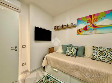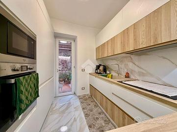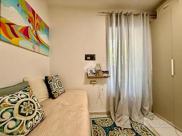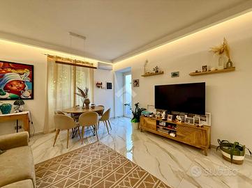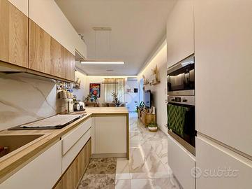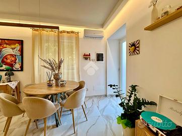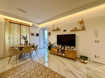Sei alla ricerca della tua casa chiavi in mano? Abbiamo la soluzione perfetta per te! Ci troviamo all'interno di un fabbricato esclusivo con poche unità abitative, in un contesto tranquillo e curato. L'appartamento non è solo finemente ristrutturato, ma è pensato per il massimo benessere quotidiano grazie a dotazioni di alto livello: Domotica di ultima generazione: Gestisci l'impianto di riscaldamento direttamente dal tuo smartphone per trovare sempre la temperatura ideale al tuo rientro. Lighting Design: Il soggiorno con angolo cottura è impreziosito da luci dimmerabili, perfette per creare l'atmosfera giusta per ogni occasione, dalla cena romantica al relax serale. Efficienza Energetica: La casa è dotata di allaccio gas metano, caldaia a condensazione nuova, termosifoni d'arredo e condizionatori in tutti gli ambienti principali. L'immobile è stato ristrutturato di recente e si mostra con ambienti caldi e accoglienti: la zona giorno, luminosa e moderna, ospita un comodo divano con parete TV e tavolo per pranzare, e una cucina disposta su doppia parete, completa di angolo snack e uscita diretta sul terrazzo coperto. Un comodo disimpegno ci conduce poi alla zona notte, dove troviamo la camera matrimoniale con balcone privato sul terrazzo, una seconda camera con finestra e il bagno, anch'esso finestrato e dotato di box doccia. Il vero punto di forza? Il terrazzo perimetrale che circonda l'intera proprietà. Pavimentato e attrezzato con una pratica doccia esterna, vanta una splendida tettoia con tavolo, ideale per i tuoi pranzi all'aperto o per rilassarti durante le calde serate estive. Dimentica lo stress del parcheggio: avrai la possibilità di sostare comodamente all'interno delle aree condominiali riservate, protette e di facile accesso.