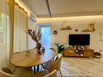 Sei alla ricerca della tua casa chiavi in mano? Abbiamo la soluzione perfetta per te! Ci troviamo nel Parco delle Ginestre, all'interno di un fabbricato con poche unità abitative, in un contesto tranquillo e curato. L'ingresso avviene dal terrazzo a livello, che conduce direttamente al soggiorno con angolo cottura, luminoso grazie alla finestra e alla porta finestra che affacciano sul terrazzo stesso. Un disimpegno introduce la zona notte, composta da due camere da letto e un bagno con doccia. L'appartamento è stato finemente ristrutturato, con impianti idraulici ed elettrici nuovi, infissi moderni, rivestimenti di qualità, riscaldamento autonomo e condizionatori. Il vero punto di forza? Il terrazzo che circonda la proprietà: pavimentato, con doccia esterna e una tettoia attrezzata con tavolo, ideale per rilassarsi o cenare all'aperto durante le calde serate estive. Inoltre, è possibile parcheggiare l'auto all'interno delle aree condominiali riservate, comode e facilmente accessibili.