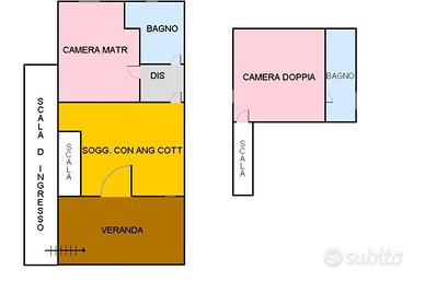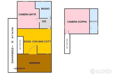 Appartamento situato al primo piano, sviluppato su due livelli e caratterizzato da ambienti luminosi e da un piacevole panorama. L'accesso avviene tramite scala esterna che conduce alla veranda, ideale per momenti di relax all'aperto. L'ingresso si apre su un soggiorno con cucina a vista, ben organizzato e funzionale. Il livello principale comprende inoltre una camera matrimoniale e un bagno finestrato. Al piano superiore si trova una seconda camera doppia, comoda e spaziosa, oltre a un secondo bagno, anch'esso ben rifinito. La facciata del fabbricato è stata recentemente oggetto di un intervento completo di rifacimento, volto a valorizzarne l'estetica e a garantirne un miglioramento sotto il profilo strutturale e manutentivo.