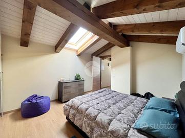 Attraverso una comoda scala interna si accede al livello superiore, dove si sviluppa la seconda camera matrimoniale, ampia e ben illuminata, impreziosita dalla presenza di una cabina armadio che garantisce ordine e funzionalità. A questo piano sono presenti anche un secondo bagno e un pratico ripostiglio, perfetto come spazio aggiuntivo per organizzare al meglio la casa.