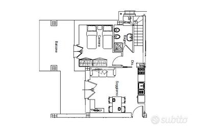 L'ingresso si apre direttamente sulla luminosa zona giorno, composta da un ampio soggiorno con angolo cottura perfettamente integrato nello spazio. L'ambiente risulta arioso e ben organizzato, con una distribuzione funzionale che consente di distinguere comodamente l'area living dalla zona pranzo. Il soggiorno gode di accesso diretto al terrazzo, uno spazio esterno vivibile, ideale per pranzi all'aperto, momenti di relax o per creare una piacevole zona verde privata.