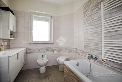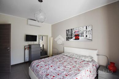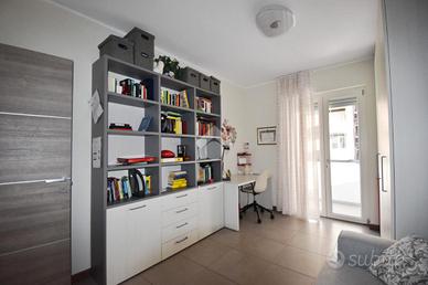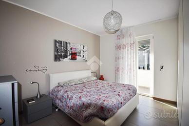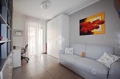 IVREA - Ci troviamo in via San Lorenzo, in una zona strategica a pochi passi dal centro della città. La palazzina, edificata nel 2015, è stata concepita con tecniche costruttive avanzate, criteri antisismici e isolamenti termici, che insieme alle varie dotazioni di capitolato come riscaldamento a pavimento, coibentazione delle murature esterne e serramenti con doppio vetro, contribuiscono a una gestione contenuta delle spese di condominio. L'alloggio in questione è collocato ad un comodo primo piano con ascensore e vanta una doppia esposizione, garantendo luminosità per gran parte della giornata. L'ingresso si presenta living sul soggiorno con angolo cottura a vista e uscita sul primo balcone esterno, ideale per trascorrere piacevoli momenti all'aria aperta. Il disimpegno ci conduce alla zona notte, composta dalle due camere da letto, di cui una matrimoniale e una ad uso singolo con sfogo esterno. I bagni sono entrambi finestrati e dotati uno di vasca e uno di doccia. L'immobile rappresenta una soluzione ideale per chi cerca comfort ed innovazione, senza rinunciare all'efficienza energetica. Di proprietà anche un box auto al piano terra dello stabile.