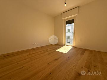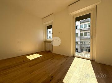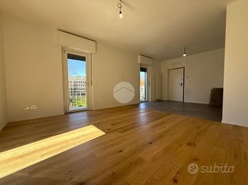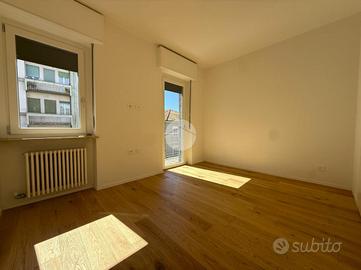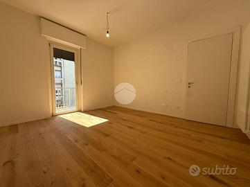 Situato in zona centrale, nel cuore del quartiere San Lorenzo, appartamento che coniuga comfort, modernità e posizione estremamente strategica, comoda a tutti i principali servizi quali scuole, farmacie, supermercati, bar e mezzi di trasporto. L'immobile, recentemente e completamente ristrutturato con interventi che hanno interessato ogni ambiente, si trova al terzo ed ultimo piano di un contesto signorile, servito da ascensore e privo di barriere architettoniche. La proprietà si distingue per l'eccezionale luminosità, garantita dalle numerose aperture e dalla presenza di balconi in tutti gli ambienti, oltre a offrire una vista panoramica sulla città e sulle montagne circostanti. L'ingresso, tramite porta blindata, conduce alla zona giorno composta da un'accogliente area living con cucina a vista, sviluppata in un moderno open space. Un comodo disimpegno accompagna alla zona notte, dove troviamo due camere da letto, una matrimoniale e una singola, e doppi servizi entrambi finestrati. Completa la proprietà la possibilità di acquistare separatamente un posto auto esterno e un ampio box auto.