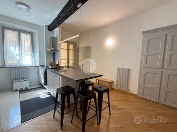 IVREA - Nel suggestivo centro storico di Ivrea, proponiamo in vendita un appartamento totalmente ristrutturato situato al primo piano di una palazzina di cui hanno recentemente rifatto la facciata, valorizzandone l'aspetto esterno. L'ingresso si apre direttamente su una cucina abitabile, perfetta per pranzi in famiglia o cene con amici, mentre il soggiorno separato gode di una piacevole esposizione con accesso diretto su un balcone che si affaccia sulla via del centro, ideale per godere della vita cittadina. Il corridoio conduce alla zona notte, composta da una camera da letto matrimoniale e da un bagno finestrato, che garantisce luce naturale e ventilazione. Completa la proprietà un'ampia cantina, utile per deposito o come spazio aggiuntivo. Questo appartamento rappresenta un'occasione unica per chi desidera vivere nel cuore storico della città, a pochi passi da negozi, caffè e servizi, con il comfort di spazi ben distribuiti, luminosi e una palazzina esteticamente rinnovata. Viene venduto con il mobilio già presente, rendendolo pronto per essere abitato da subito.