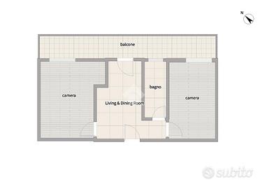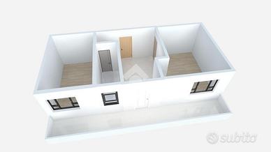 L'immobile è composto da un luminoso soggiorno-cucina, camera matrimoniale e cameretta, e un bagno finestrato con la doccia.