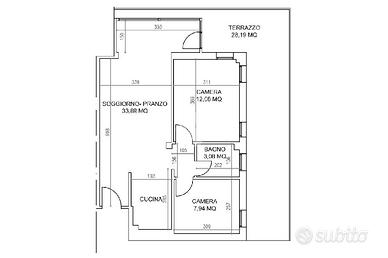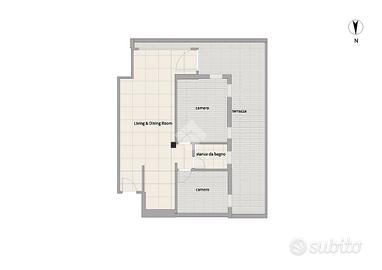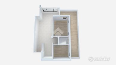 Dal soggiorno si accede al disimpegno che collega la zona notte, composta da una camera matrimoniale e una cameretta con letto a terra. Infine vi è il bagno, finestrato e dotato di doccia.