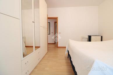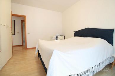Attraverso un disimpegno si accede alla zona notte, composta da una camera matrimoniale luminosa, con portafinestra sulla terrazza, e da un ripostiglio finestrato, attualmente utilizzato come cameretta, in grado di accogliere anche un letto a castello, per un totale di 4 posti letto.