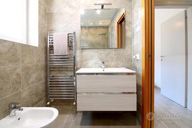 Al piano terra completa la proprietà uno scoperto esclusivo con posto auto coperto e spazio per il ricovero delle biciclette. È inoltre dotato di impianto di riscaldamento autonomo e aria condizionata.