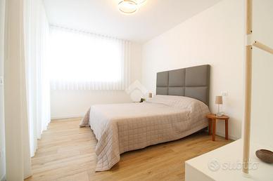 Jesolo Lido - Piazza Carducci Residence Podium All'interno del rinomato Residence Podium, iconico complesso residenziale progettato dall'architetto Stefano Pujatti, costruito nel 2019 e ultimato nel 2021, proponiamo in vendita un elegante appartamento trilocale, caratterizzato da design contemporaneo, materiali isolanti di ultima generazione e finiture di altissima qualità. L'edificio si distingue per le sue linee architettoniche uniche, con volumi a sbalzo, terrazze arcuate e una struttura slanciata su esili pilastri, offrendo scorci suggestivi e una piacevole vista mare. Particolare attenzione è stata riservata all'efficienza energetica e al comfort abitativo, grazie all'impiego di soluzioni costruttive innovative e materiali ad alte prestazioni. L'appartamento, situato al secondo piano e servito da ascensore, si apre tramite portone blindato su un luminoso soggiorno con angolo cottura firmato SMEG. La zona giorno è impreziosita da un'ampia vetrata scorrevole che conduce alla terrazza esposta a sud-ovest, dalla quale si gode di una piacevole vista sulla piscina condominiale e di uno scorcio di mare. Un comodo disimpegno accompagna alla zona notte, dove si trova un bagno finestrato con box doccia e due spaziose camere matrimoniali: una attualmente arredata con due letti singoli, mentre l'altra dispone di letto matrimoniale e accesso diretto alla terrazza. L'immobile è dotato di tapparelle elettriche e impianto di climatizzazione con pompa di calore caldo/freddo, garantendo comfort in ogni stagione. Al piano terra si accede direttamente alla splendida piscina riscaldata, circondata da curate aree verdi arricchite da piante e fiori ornamentali, ideale per momenti di relax in un contesto esclusivo. Al piano interrato completa la proprietà un posto auto ad uso esclusivo, con accesso diretto anche al supermercato situato al piano terra, per la massima comodità nella vita quotidiana. Una soluzione ideale per chi desidera un'abitazione moderna, elegante e funzionale