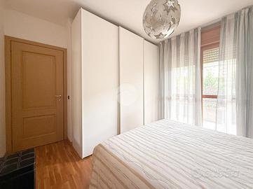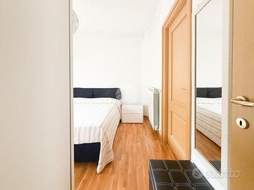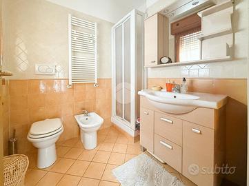 Dal disimpegno si accede alla zona notte, composta da una camera matrimoniale con accesso al terrazzo e bagno privato finestrato con doccia, una camera singola e un secondo bagno con vasca.