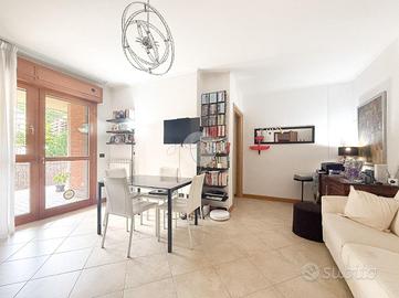 L'ingresso si apre su un soggiorno con cucina a vista e accesso al terrazzo, spazio luminoso e funzionale per la vita quotidiana. Il terrazzo è dotato di locale tecnico con caldaia, che garantisce praticità e ordine agli spazi.