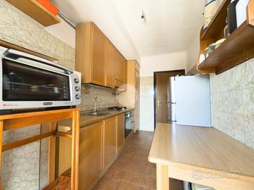 L'ingresso si apre su un luminoso soggiorno con accesso diretto al primo balcone; la cucina è abitabile e dispone di uscita sul secondo balcone. La zona notte si compone di una camera matrimoniale con accesso al balcone del soggiorno, una camera singola con accesso al balcone della cucina e un bagno finestrato completo, ristrutturato nel 2008.
