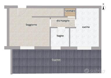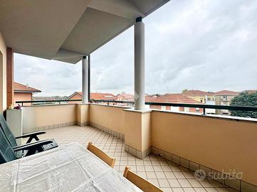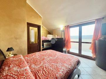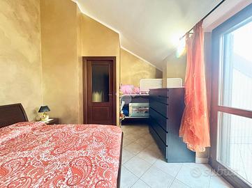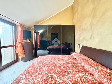 Proponiamo in vendita a La Loggia, appartamento bilivello di recente costruzione situato all'ultimo piano comodo a tutti i servizi del Paese. L'immobile, offre spazi ben distribuiti e moderni. La cucina abitabile si apre sull'ampio terrazzo, ideale per momenti di relax all'aperto e a contatto con la natura. Il soggiorno luminoso affaccia anch'esso al terrazzo garantendo l'entrata di luce naturale dalla portafinestra. Il piano è completato da un primo servizio finestrato con doccia e un pratico ripostiglio. Al piano mansardato vi è la camera da letto matrimoniale che dispone di un balcone privato. Il secondo servizio è finestrato con vasca. Inoltre, per un maggiore spazio di stoccaggio vi è il secondo ripostiglio. I serramenti sono in legno in doppio vetro e sono dotati di zanzariere. La gestione del riscaldamento è autonoma assicurando un maggior comfort per la famiglia. L'immobile è completo di un Box auto doppio da acquistare ad €16.000 e cantina. Questa soluzione abitativa rappresenta un'opportunità unica per chi cerca comfort e modernità, in un contesto tranquillo e riservato.