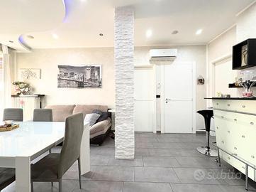 Proponiamo in vendita, appartamento completamente ristrutturato al terzo ed ultimo piano. Il portoncino blindato si apre sull'ampio soggiorno con il cucinotto a vista, creando uno spazio accogliente per momenti speciali. Il primo balcone, diventa il luogo ideale per rilassarsi e inoltre offre uno spazio perfetto per un locale adibito a lavanderia. Nella zona notte, troverai due luminose camere da letto di ampie metrature, entrambe con accesso diretto al balcone privato, rendendo ogni risveglio un piacere. Completa l'appartamernto il bagno finestrato con doccia e vasca. Inoltre, l'immobile è completo di un ampio ripostiglio garandendo un maggiore spazio di stoccaggio. Il riscaldamento è centralizzato regolabile con termovalvole, permettendo il pieno controllo della temperatura interna. Vi è anche l'impianto di aria condizionata. La soluzione è completa di una cantina privata.
