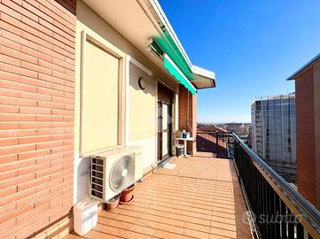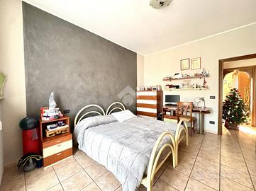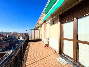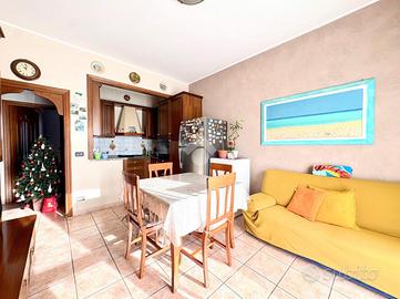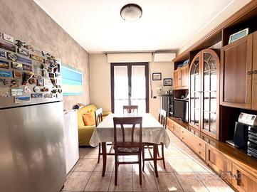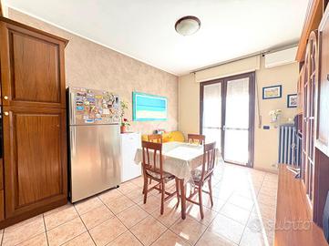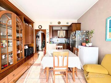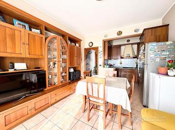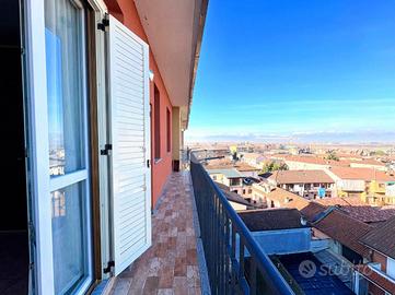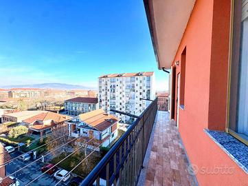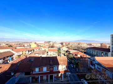 Proponiamo in vendita nel cuore di La Loggia, appartamento al quinto piano di una palazzina dotata di ascensore. La palazzina ha effettuato lavori per migliorare la propria efficienza energetica, rifacendo completamente il cappotto termico e il tetto. L'ingresso si apre direttamente su ampio disimpegno che conduce a tutti gli ambienti della casa. La zona giorno è caratterizzata da un luminoso soggiorno con cucinotto a vista, creando un ambiente confortevole e accogliente. Quest'ambiente affaccia sul terrazzo, permettendo di poter vivere momenti all'aperto in compagnia. La zona notte è composta da due ampie camere da letto, di cui una con accesso diretto al balcone privato il quale regala un'incantevole vista sul paesaggio. Il servizio è finestrato con doccia e vasca, ideali per chi cerca funzionalità e praticità. Inoltre, questa fantastica soluzione è completa di un pratico ripostiglio offrendo spazio aggiuntivo per le esigenze quotidiane. I serramenti in PVC doppio vetro, garantiscono un ottimo isolamento termico e acustico. Il riscaldamento è centralizzato con termovalvole, mantenendo la possibilità di poter scegliere al meglio la temperatura interna. Inoltre, per garantire maggior comfort vi è l'impianto di aria condizionata. Al piano interrato una pratica cantina. La posizione è centrale, a pochi passi dai servizi principali e negozi del Paese, rappresentando un'opportunità per chi desidera vivere in una zona ben servita.