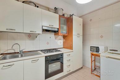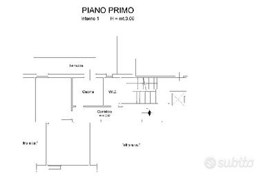L'ingresso è nell'ampio corridoio dal quale si accede all'ampio soggiorno, alla camera da letto matrimoniale ed alla cucina abitabile con accesso alla terrazza.
