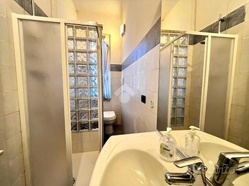 Il servizio igienico raccolto e funzionale è finestrato con box doccia.