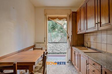 L'appartamento si presenta in stato originale di conservazione, con pavimenti in graniglia e infissi in legno. Lo stabile di costruzione anni '60 si presenta in ordine e in ottimo stato nelle sue parti comuni, dotate di ampi spazi verdi e di un piazzale di parcheggio libero a cui si accede tramite cancello elettrico ad apertura remota. Il riscaldamento è centralizzato con le termovalvole.