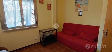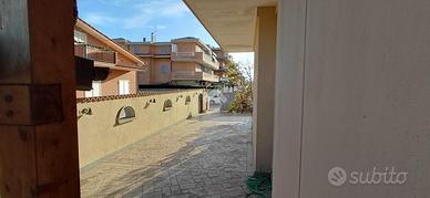 In zona Domitilla e precisamente in Via Fumaroli, proponiamo in vendita un appartamento al piano terra rialzato di una palazzina di tre piani con ascensore. L'immobile vanta un ampio giardino privato di circa 120 mq, completo di passo carrabile e posto auto interno, ideale per vivere gli spazi esterni in totale comodità. Le finestre, affacciate a Nord-Est, garantiscono una piacevole luminosità durante la giornata e sono protette da inferriate, per una sicurezza maggiore. All'interno l'appartamento si compone di un soggiorno con angolo cottura, disimpegno, due camere e due bagni, entrambi senza finestra e con doccia, di cui uno in camera matrimoniale. L'immobile è in buono stato, con bagni ristrutturati nel 2009, e il riscaldamento è garantito dai condizionatori caldo/freddo. La posizione è ottimale, a soli 500 metri dal mare.Completa la proprietà un BOX AUTO di 20 mq al piano terra al prezzo di € 19.000,00. L'ingresso al box avviene tramite accesso privato dalla strada all'interno di un'area privata. La sua metratura consente di manovrare l'auto con estrema facilità e l'ambiente si presenta asciutto, senza segni di umidità.
