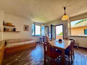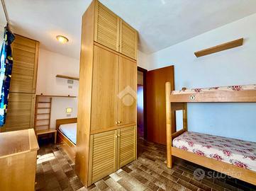 La soluzione presenta l'ingresso sull'ampio soggiorno con angolo cottura e sfogo sul balcone vista mare esposto a sud/ovest, di seguito troviamo il disimpegno che conduce alle due ampie camere da letto ed al bagno finestrato con doccia.