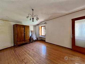 Sita nel centro storico di Lanzo ha l'ingresso nella prima parte tramite le scale esterne che diventano interne accedendo alla porta d'ingresso. La zona giorno è la prima stanza che si incontra, dotata di un balcone con passaggio diretto al solaio. Dal salotto si accede sia alla camera da letto che alla cucina. Un corridoio collega tutte le stanze, compresi il bagno e lo sgabuzzino.L'immobile dispone di riscaldamento autonomo tramite stufa a legna e di un tetto in losa. Non è presente un posto auto né un giardino. Gli impianti sono quelli originali.
