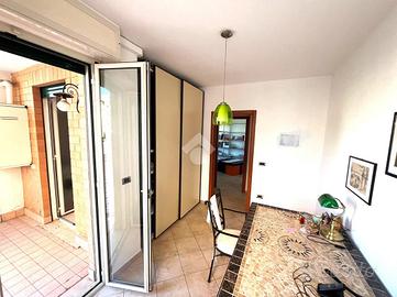 L'ingresso è direttamente nel soggiorno con angolo cottura, il corridoio ci accompagna nelle 2 camere da letto e i 2 bagni di cui uno con vasca e l'altro con il box doccia.