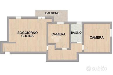 L'ingresso conduce direttamente alla zona giorno open space con soggiorno e cucina, uno spazio funzionale che si affaccia sul balcone.