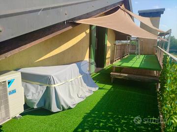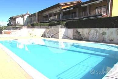PACENGO - Inserito all'interno di un complesso residenziale con piscina, a pochi passi dal lago e dal porto, proponiamo luminoso appartamento con garage e cantina privati. La soluzione si sviluppa su due livelli: al piano primo troviamo l'ingresso, il soggiorno con angolo cottura, una camera doppia e un bagno finestrato con doccia; al piano mansardato, travato a vista e con parquet, troviamo l'ampia camera matrimoniale con terrazza in parziale vista lago, il secondo bagno finestrato dotato di vasca e un comodo ripostiglio. Completa di arredo e di impianto di climatizzazione con pompa di calore.