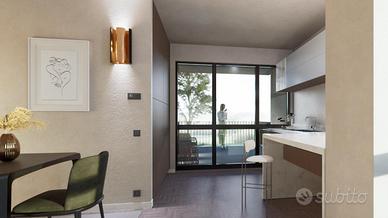 LAZISE - A 300 mt dal centro storico di Lazise, comodo ai servizi e ai divertimenti che questa località offre, proponiamo in vendita in piccolo contesto residenziale di sole 7 unità abitative con piscina ed in fase di costruzione, un appartamento piano terra composto da soggiorno, angolo cottura, 2 camere da letto e servizio. Piccolo giardino privato.