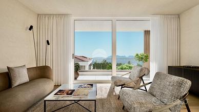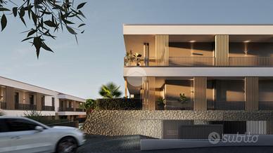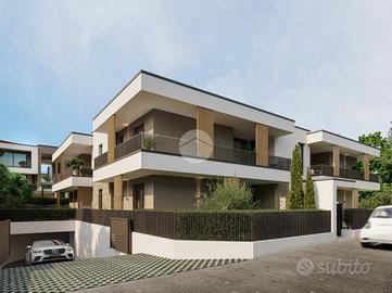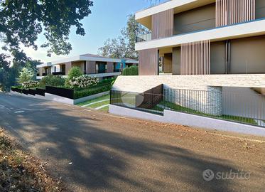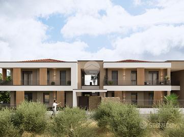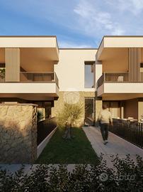 LAZISE - A 300 mt dal lago, in zona tranquilla, proponiamo uniche soluzioni, in residence di nuova costruzione con piscina, al piano terra con ampio giardino o al piano primo con grande terrazza abitabile.